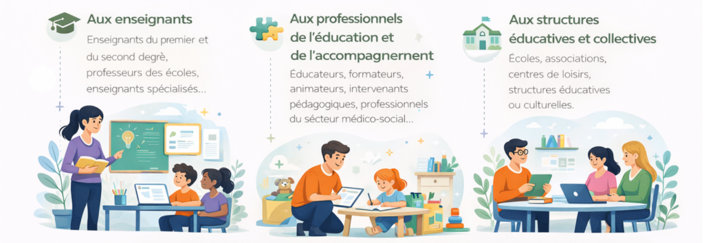 La trousse de ressources s’adresse à tous les professionnels de l’éducation et l’accompagnement pédagogique, quels que soient leur cadre d’intervention ou leur public.